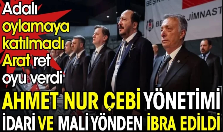 Beşiktaş Olağan İdari ve Mali Genel Kurul Toplantısı Akatlar’da devam ederken, Ahmet Nur Çebi’nin başkanlığında bulunan 3 dönem idari ve mali yönden ibra oylamasına sunuldu. Yapılan oylamada Ahmet Nur Çebi başkanlığındaki 1 Ocak 2022 - 29 Mayıs 2022, 29 Mayıs 2022 - 31 Aralık 2022 ve 1 Ocak 2023 - 31 Mayıs 2023 dönemleri idari ve mali yönden oy çokluğu ile ibra edildi.