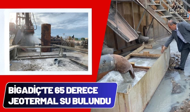 Balıkesir'in Bigadiç İlçesi’nde bulunan sıcak su kaynaklarına bir yenisi daha eklendi. 1071 dönümlük Recep Tayyip Erdoğan Millet Bahçesi’nin 3 bin dekarlık Höyük bölümünde kurulacak olan Bigadiç Jeotermal Kaynaklı Tarıma Dayalı İhtisas Organize Sanayi Bölgesi kuyu açma çalışmalarında 65 derece sıcaklıkta saniyede 30-35 litre debide jeotermal akışkan su elde edildi.