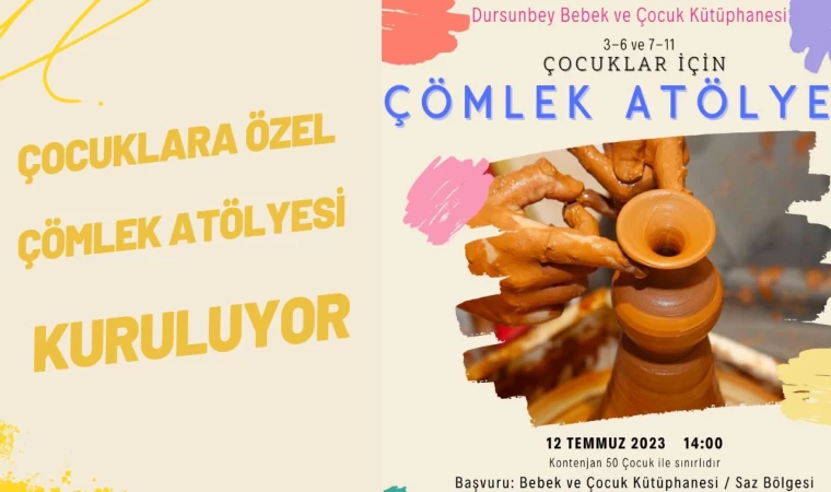 Balıkesir’in Dursunbey ilçesinde çocuklar için çömlek atölyesi kuruluyor.Sanat ve terapinin bir arada olacağı çömlek atölyesi Bebek ve Çocuk Kütüphanesinde yapılacak. 3-6 ve 7-11 yaş arası çocuklara özel olan atölye, 12 Temmuz saat 14.00’da gerçekleşecek. Kontenjan 50 kişi ile sınırlı.