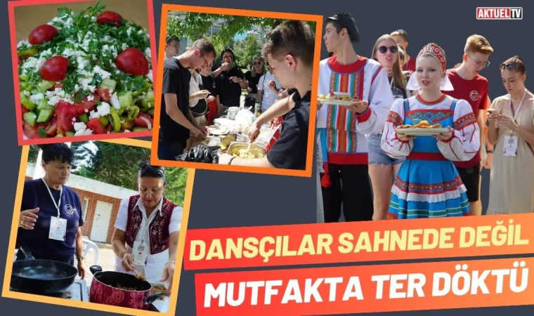 Altın Karagöz Halk Dansları Yarışması’na katılan yarışmacılar, Açıkahava Tiyatrosu’nda yarışma heyecanına keyifli bir mola verdiler. Bursa Gastronomi Derneği'nin katkıları ile düzenlenen mini yemek yarışmasında, dansçılar bu kez becerilerini sahnede değil, mutfakta sergilediler. Ülkelerinden getirdikleri malzemelerle kendi kültürlerine ait yemeklerden yaparak diğer ülke dansçılarına ikram eden ekipler, ayrıca Türk şeflerin de yardımıyla, Bursa’ya özgü yemek ve tatlıları pişirmeye çalıştılar.