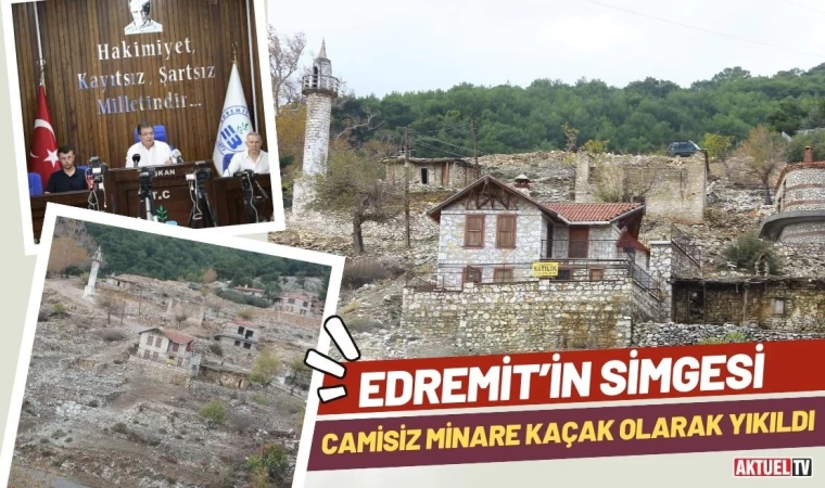Ayrıca yıkım konusunda da müsaade ve talep gerekirken; bakın yani burada bir yeri yıkarken belediyeden bir talepte bulunmanız gerekiyor. Ben burayı yıkacağım. Bunun bir prosedürü var. Başvuru yapıyorsunuz. Onlarla ilgili incelemeler yapılıyor. Yıkım izni veriliyor ya da verilmiyor. Bize yıkım konusunda izin talebinde dahi bulunulmamıştır. Edremit Belediyesi olarak vermiş olduğumuz imar durum belgesinde özellikle belirterek yolda kalan minarenin korunması gerektiği altı çizilmiştir. Bu belge de verilecek size. Çok net. Gerek Edremit Müftülüğü gerekse de yapım işini alan firma yetkililerine minarenin korunması gerektiği belediyemizce defalarca sözlü ya da belgeli, şifayı ya da yazılı olarak bildirilerek gerekli tüm uyarılar yapılmıştır” dedi.