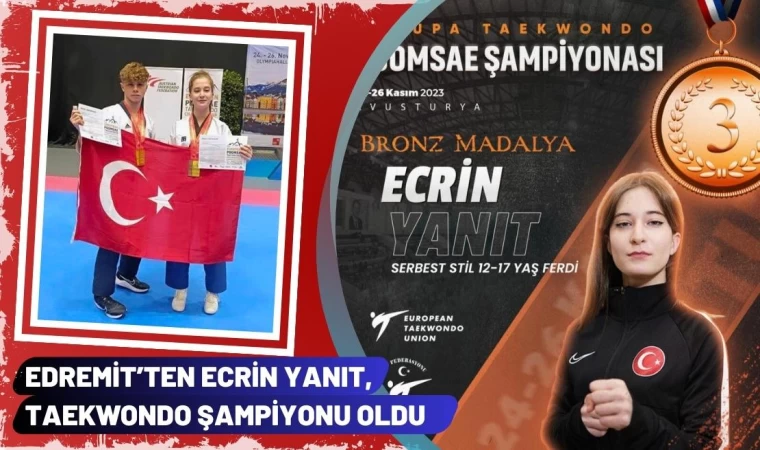 Balıkesir’in Edremit ilçesinde, Edremit Belediyesi Taekwondo Spor Kulübü sporcusu Ecrin Yanıt Avusturya’da Avrupa Taekwando Poomsae Şampiyonası’nda iki madalya kazandı.