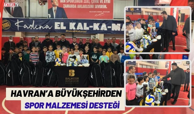 Balıkesir’e bağlı Havran’da Belediye Başkanı Emin Ersoy, Ak Parti İlçe Başkanı Sercan Şık ile birlikte Kocaseyit Kapalı Spor Salonunda Balıkesir Büyükşehir Belediyesi tarafından ilçede bulunan lise ve ortaokul öğrencilerinden sonra ilkokul öğrencilerine de verilen spor malzemesi ve ekipman dağıtım törenine katılım sağladı.