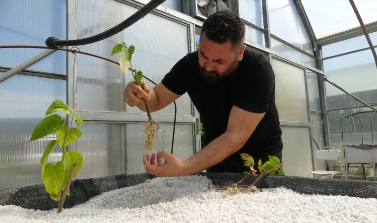 Burada yaptığımız üretimler sayesinde mümkün olduğunca farklı türlerde fidan üretimi sağlıyoruz. Seramız karadut damızlık parselimizdir. Burada dünyada ilk kez denenen bir daldırma yöntemiyle fidan üretimi başlattık. Fidanları öncelikle biz 45 derecelik açılarla diktik, daha sonra sezon boyunca yavaş yavaş yatırarak yerle bir yapmaya çalıştık. Sezon içerisinde oradan çıkan her sürgün bizim için yeni bir fidan oldu. Elma ve armut türlerinde zaten halihazırda kullanılan bir yöntemdi ama karadut fidan üretimi için ilk kez biz denedik ve başarılı sonuçlar aldık.
