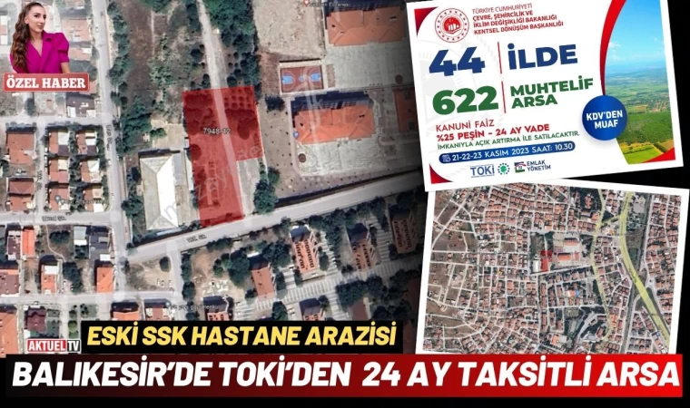 Yapılacak arsa satışında Balıkesir’den satışa giren büyük bir arazi var. Eski SSK olarak bilinen arazi Toki’den satışta gözüküyor. Toki satış listesinde 3130 metrekare alan Konut ve ticaret alanı olarak satışa çıkıyor. Yüksek bir kot farkının olduğu arazinin hemen yanında Altıeylül Yeni Fen lisesi bulunuyor. Yıldız mahallesi sınırında bulunan arazinin teminat tutarı ise 2.300.000.00 olarak belirlendi. Toki Balıkesir’den satışa çıkacak olan arsanın muhammen bedeli ise 18.943.100,00 lira olarak belirlendi. Hemen teslim olarak 24 eşit taksitle satılacak olan arzinin toplam büyüklüğü ise 3787.51 metrekare iken Hazineye ait kısmı ise 3130.99 metrekaredir.