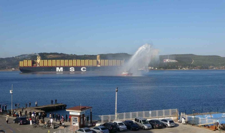 İngiltere’nin Felixstowe Limanı’ndan yola çıkan ve Tekirdağ’a giden Liberya bayraklı 399.9 metre uzunluğundaki ‘MSC Türkiye’ Ege Denizi’nden saat 09.00 sıralarında Çanakkale Boğazı’na giriş yaptı. Saat 10.10 sıralarında Çanakkale önlerinde olan ‘MSC Türkiye’ 29 Ekim Cumhuriyet Bayramı’nın 100’üncü yıl dönümünde Kilitbahir Kalesi ile Kilitbahir köyü dağında bulunan ‘Dur Yolcu’ yazısı önünden geçti. Geminin Çanakkale önlerinden geçişi sırasında Kıyı Emniyeti Genel Müdürlüğüne bağlı römorkörler su gösterisi ve selamlama yaptı.