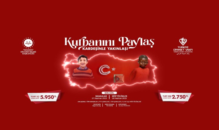 Diyanet İşleri Başkanı Erbaş, TDV’nin 2023 yılı vekaletle kurban kesim organizasyonuna ilişkin sosyal medya hesaplarından paylaşımda bulundu. Erbaş, paylaşımında, “Kurbanını Paylaş Kardeşinle Yakınlaş. Diyanet İşleri Başkanlığı ve Türkiye Diyanet Vakfı olarak 2023 yılı vekaletle kurban kesim bedelini yurt içinde 5 bin 950 lira, yurt dışında ise 2 bin 750 lira olarak belirledik. Bağışlarınızı başta deprem bölgesi olmak üzere tüm ihtiyaç sahibi kardeşlerimize ulaştırıyoruz” ifadelerini kullandı.